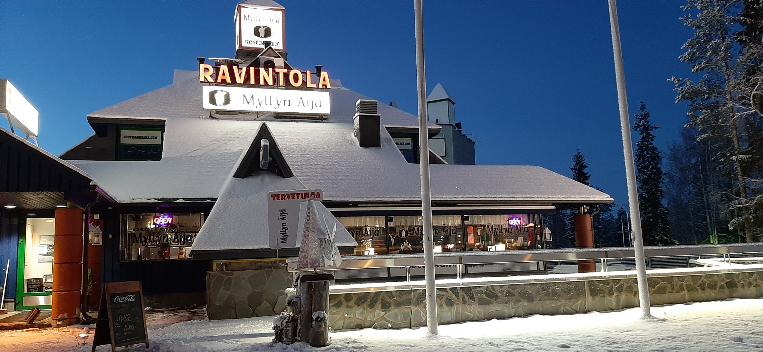 Myllyn Äijä is a traditional, local restaurant near the centre of Levi. It was founded by the Kittilä-based Virmakoski brothers back in 1995. We have room for 80 diners, and we offer unpretentious, tasty and honest food and relaxed service.